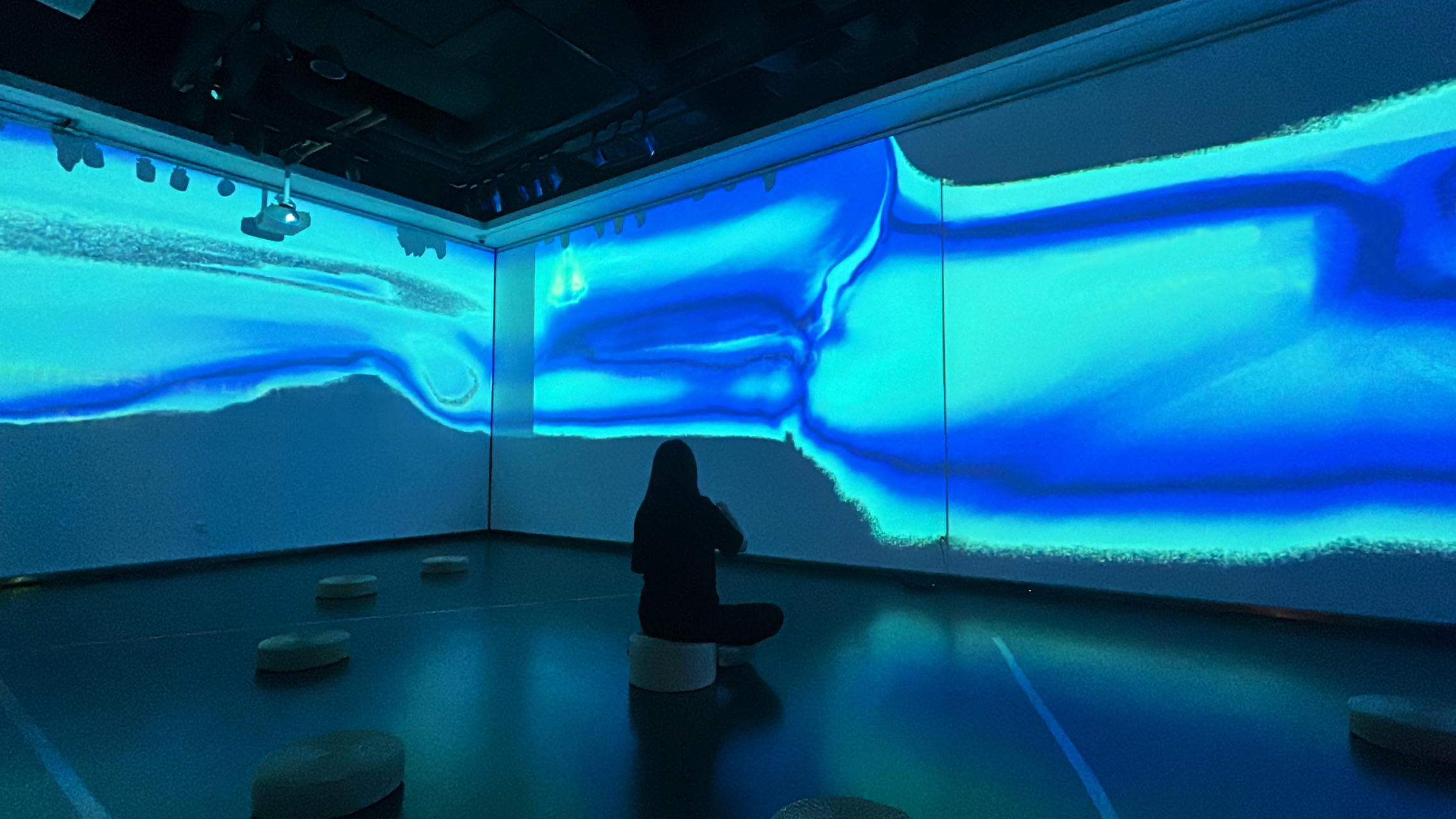 中心位体验者作为“引领者”通过一系列的手势交互控制正念冥想的进程,多位体验者可以共同遨游在“身体”世界。同时“引领者”能够将自己的“心灵”世界隔空描绘并分享。作品的核心就是“静”。既是指身体静止时的轮廓,也是心静下来冥想的一段旅程。学会用自己的方式管理“慢性压力”,建立起自己的身体时钟。